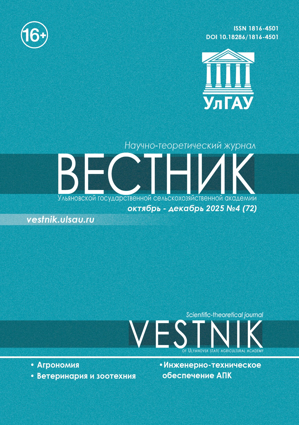 Научно-теоретический журнал «Вестник Ульяновской государственной сельскохозяйственной академии» публикует статьи, отражающие вклад ученых в различные отрасли аграрной науки. В журнале размещаются научные статьи докторантов, аспирантов и научных работников по следующим научным специальностям и соответствующим им отраслям науки: